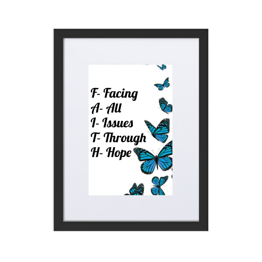 FAITH Matte Paper Framed Poster With Mat Make any room look more sophisticated by displaying this framed poster with a smooth, white mat board. It’s printed on a quality matte paper and framed with a semi-hardwood alder frame. • Paper thickness: 10.3 mil • Paper weight: 5.57 oz/y² (189 g/m²)...